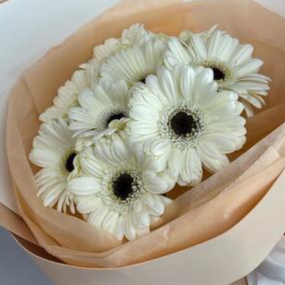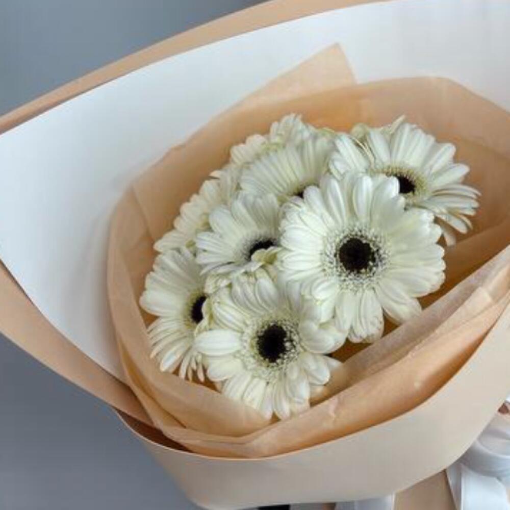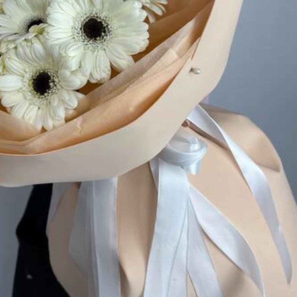 Гербера – 9 шт.Пленка матовая – 4 шт.бант атласный – 2 шт.