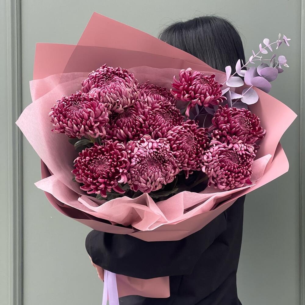 15 розовых кустовых хризантем