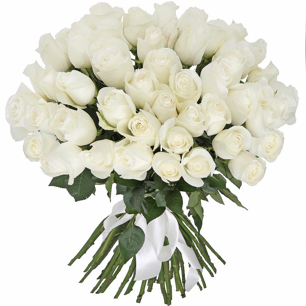 Атласная лента – 1 шт.Белая роза 50 см – 75 шт.