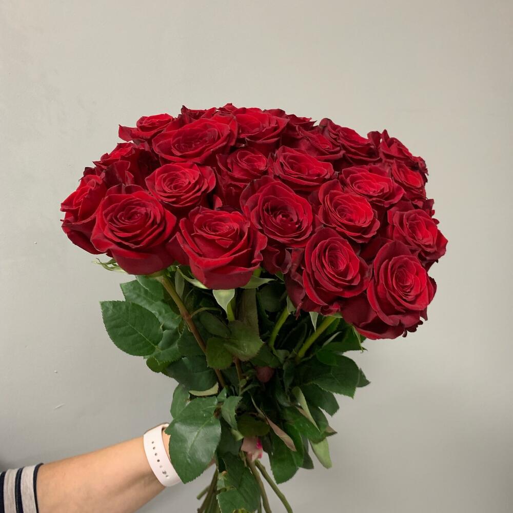 Роза Эквадор 70 см – 25 шт.Лента атласная – 1 шт.