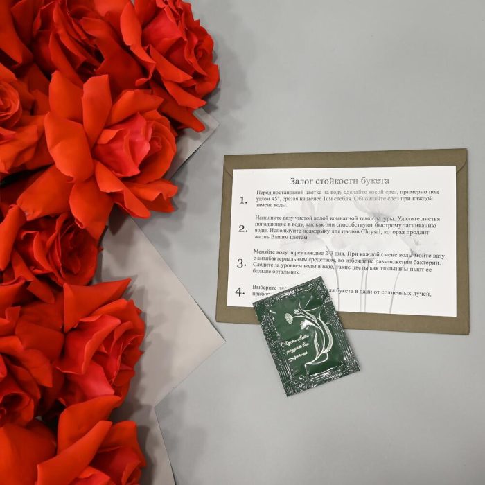 - Сроки возврата: Претензии по качеству букета принимаются в течение 24 часов с момента его получения.