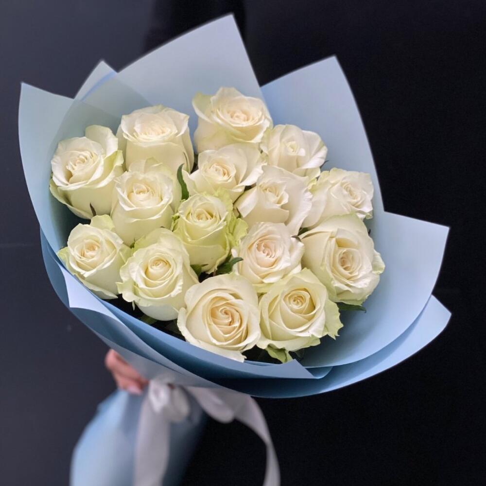 белые розы – 15 шт.сильная упаковка – 5 шт.
