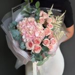 Гортензия – 1 шт. Спрей роза – 5 шт. Эвкалипт Микс – 1 шт. Астильба – 3 шт.