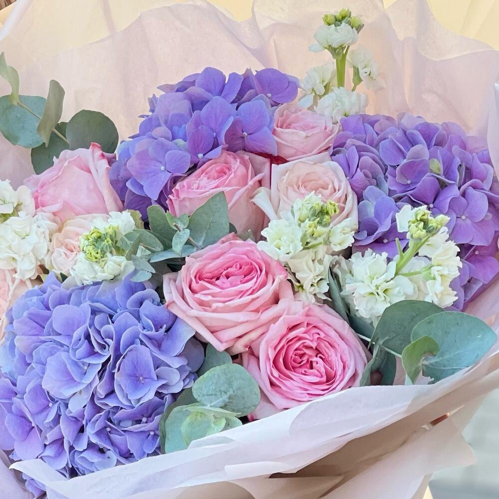 Альстромерии, Кустовые розы, Лизиантусы, Пионовидные розы, Розы, Ромашки