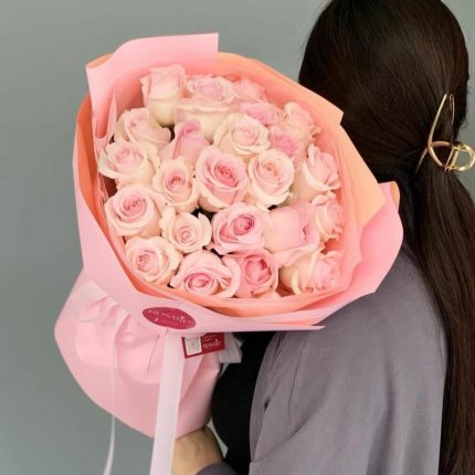 Букет из 15 белых и розовых эустом (лизиантусов) в стильной упаковке “Эландиэль”